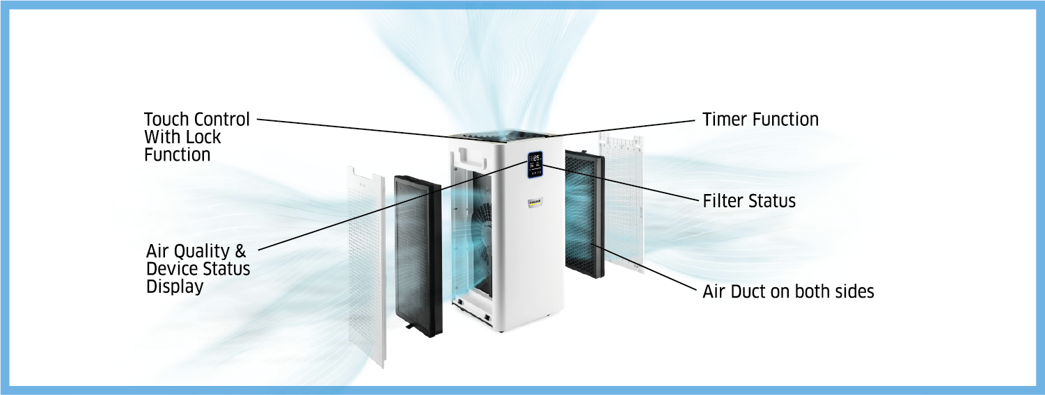 If you’ve ever wondered how important air is, simply try holding your breath for a few seconds. For us to feel good and be able to work, learn, or regenerate effectively, the air we breathe needs to be clean. Kärcher offers various air purifiers for different living situations and with the intelligent automatic mode, the device always adapts its performance to the current air quality.