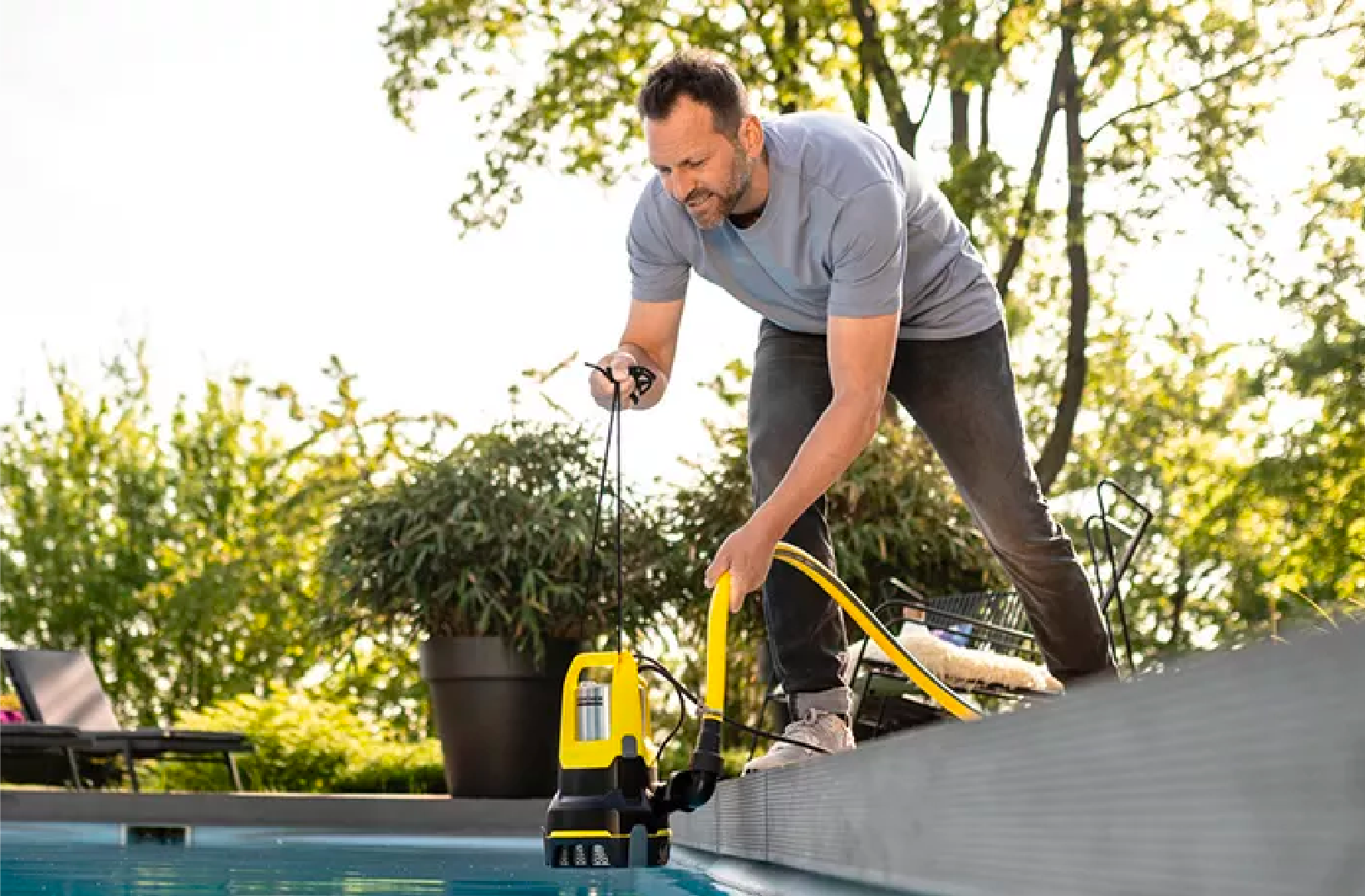 Karcher has powerful, easy-to-use water pumps for every requirement and a wide variety of situations. Do you want to use reclaimed water from alternative sources in your home and garden to save precious drinking water? Karcher's booster centrifugal pumps reliably convey rainwater and groundwater from barrels, cisterns or wells to wherever it is needed. You can buy booster pumps from Karcher for both watering your garden and for household use, for example as home pumps. If you want to empty your pool or garden pond before a spring clean, a submersible pump from Karcher is the perfect solution.
