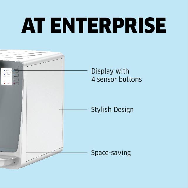 Small, compact, and space saving! Simply connect it to the drinking water network and it can supply colleagues, patients or guests with an unlimited supply of chilled or ambient still water – and obviously with perfect hygienic drinking water quality.